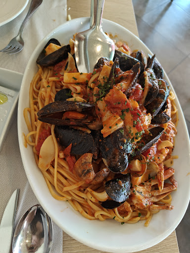 Davvero una bella scoperta, c'è stato consigliato più volte e abbiamo deciso di provarlo e senza ombra di dubbio avrà due clienti in più. Iniziamo dall'ambiente accogliente è un ristorante carino, servizio ottimo camerieri tutti gentili e precisi Qualità e gusto del cibo non si discutono abbiamo preso un antipasto di mare e come quantità era giusto poiché i primi piatti sono enormi quello in foto è un piatto per una persona ma abbiamo dovuto dividere e annullare la richiesta per un secondo piatto poiché era davvero tanto ! Riguardo al sapore era eccezionale. Prezzi ottimi. Non sono solito fare i complimenti in un ristorante ma sta volta glielo fatti poiché se li sono meritati lo consiglio assolutamente.