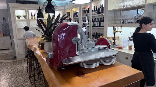 Read moreLocale bello ampio in pieno xentro storico a Bassano. Molti tavolini da due persone in un bel legno. Luci calde, lampadari curiosi specialmente quello della saletta rialzata, in fondo al locale, con 5 tavolini da due. Bello anche il soffitto. Presente un bellissimo tavolo penisola in legno dove fare aperitivo in piedi, o cenare su dei comodi sgabelli. Bagno grande, pulito, ordinato, efficiente e profumato, con fasciatoio per bambini, asciugamani ad aria calda. Bellissime bottiglie di vino in vetrinetta. Adocchiata scatola porta vini con incisa "Col Dovilìgo Breganze", quindi, vini locali, ottima scelta (anche vini di Valdobbiadene). Torte stupende e anche vasta scelta tra cornetti e baci di dama. Personale cortese ed accogliente. Poco segnale, ma disponibile wifi. Incantevole pavimentazione in mosaico....
