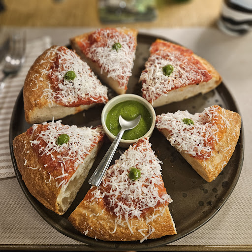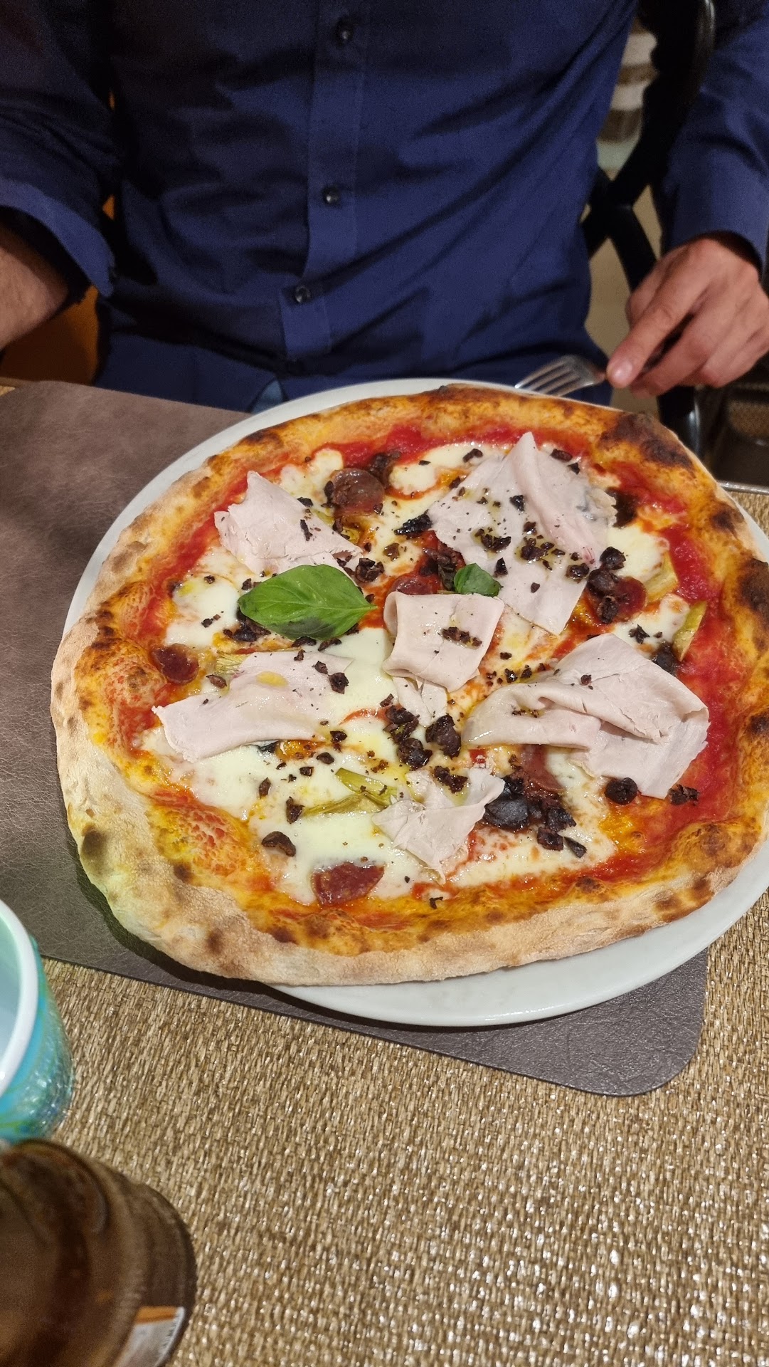 Una volta seduti al tavolo leggo il menù e noto che in basso a sinistra è riportata una differenza di prezzo per il coperto (cosa che non avevo mai visto ma neanche mai sentito) e mi accorgo che nella cantinetta il prezzo del coperto a persona è di ben 5 euro, più del doppio rispetto alla sala al piano terra dove costa 2 euro, questa cosa non era stata neanche lontanamente menzionata. Dopo 20 minuti di attesa riesco a chiamare il cameriere per ordinare, passano altri 40 minuti e arriva la prima pizza, dopo cinque l'altra. Una volta alla cassa chiedo il motivo dei 10 euro di coperto per due persone, il proprietario senza neanche guardarmi negli occhi dice solo "costa 5 euro a testa", non menziona neanche questa volta la differenza di prezzo. Pago e saluto per sempre.