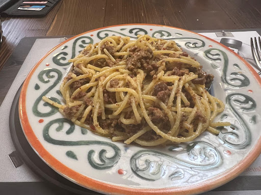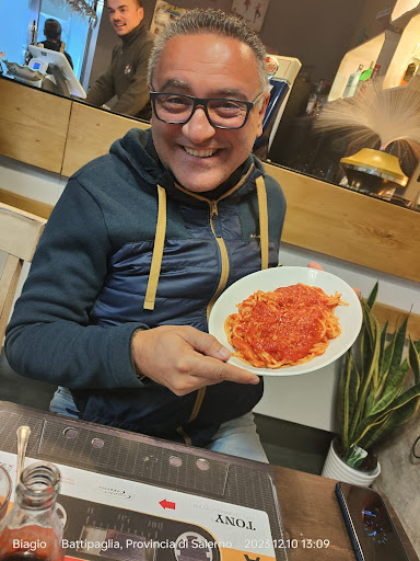 Read moreNulla di speciale. È una spaghetteria, ha due pagine di spaghetti, DUE PAGINE, e 5 secondi e una pagina di panini. Secondo me inaccettabile proporre così tanti primi, capisco che proponi solo quel tipo di pasta ma due pagine un po' too much. Cameriere con delle battute un po' tristi, sempre la solita ripetuta: " tanto paga lui" "e questo si paga"... Va bene una, va bene due, alla terza no. Abbiamo dovuto chiedere del pane, e ci è stato portato un cestino con 3 fette in croce e ho il dubbio, molto forte, che sia stato il cestino che avevano levato poco prima da un altro tavolo, dato che poco prima aveva sbarazzato un tavolo e non ho finito di chiederlo, che l'ha preso da dietro la porta e me l'ha portato con l'ennesima battuta infelice. Buonissima la cacio e pepe, lasciato molto a desiderare quella con salsiccia, porchetta e funghi, non aveva legami il condimento con la pasta e i funghi li ho dovuti cercare, buone anche le frittelle, erano 10 peccato che erano grandi quanto i cocopops. Nota molto positiva, che non tutti i ristoranti fanno, abbiamo preso due calici di vino e una bottiglia d'acqua. I calici di vino erano dei SIGNORI CALICI DI VINO, la bottiglia d'acqua non l'abbiamo nemmeno aperta e c'è l'ha levata dal conto senza dire nulla. Molto buono il tiramisù fatto da loro, avrei preferito fosse più grande. Data la sala piccola, avevo l'aria del condizionatore che arrivava giusto addosso, gli ho fatto notare questa cosa e dopo aver visto che non riusciva a spostare le alette ci ha cambiato di tavolo. Finale della recensione? Non ci tornerei sinceramente, non mi ha fatto impazzire il mio spaghetto, errore mio che l'ho preso, errore loro che l'hanno messo in menù, boh questa è stata la mia esperienza. Non mi sento di dare di più a questo ristorante. Bisogna rivedere il menù secondo me e anche...