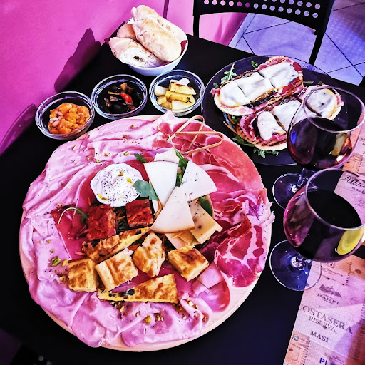 Le sue motivazioni spaziavano dal: "noi siamo un ristorante" (sottolineo che la parola che la fa da padrone su vetrofanie, social e tavoli è VINERIA, a tale puntualizzazione non ha saputo dare risposta se non rincarando la dose d'insulti e aumentando il tono di voce). Sarebbe stato più opportuno e remunerativo forse ordinare due bottiglie d'acqua e un piatto di pasta? Spoiler: il “ristorante“ a menù non propone nessun primo piatto.. taglieri, bruschette, insalata e carne la fanno da padrone