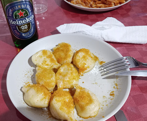 From outside the place might look unimpressive but we had the best food we tried in Baunei here! Literally everything we tried was super fresh and tasted amazing. They have super tasty seafood salads, amazing pizette, Culurgiones, and don't miss out on the Carbonara di mare! If we had discoverd this place a bit earlier we might have come every day! :D Super convenient also with the take away since our holiday apartment was just 1 minute away. The prices are absolutely fair and affordable for the high quality they provide. We payed 34€ for a nice portion of seafood salad, a fried Margherita Calzone, Carbonara di Mare and the...