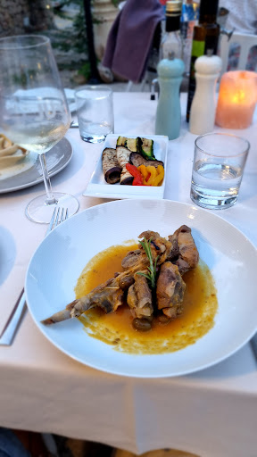 Read moreEsperienza terribile,da dimenticare. Entriamo in questa location immersa negli ulivi, molto carina e inizialmente abbiamo avuto una bella accoglienza anche da parte del personale, tutto iniziato bene che ti porta a pensare a un'ottimo ristorante. Peccato che come è iniziato il servizio abbiamo capito che l'abito non fa' il monaco. Già solo dal pane vecchio nel cestino abbiamo iniziato male. Le aspettative si sono rivelate alquanto deludenti. Nel frattempo arriva un tavolo di 10 persone e di noi si sono completamente dimenticate.Ordiniamo un'insalata e un polpo con crema di ceci, un raviolo di pesce e una porzione di culurgiones. Ci arrivano, dopo sollecito e dopo un' ora di attesa, gli antipasti. Decisamente troppo, calcolando che sicuramente il polpo non era stato cotto al momento.Il problema era che hanno servito tutti gli altri tavoli tranne che noi. Nel frattempo aspettiamo i primi che arrivano anch'essi dopo un' altra ora, nel frattempo continuano ad uscire i piatti nel tavolo di 10 persone. Sollecitiamo nuovamente. Quindi dopo 2 ore ci arrivano finalmente i primi, alquanto deludenti, non hanno per niente valso l'attesa... I ravioli di pesce avevano un sughetto talmente liquido che l'unico modo per mangiarlo sarebbe stato con una cannuccia. Anche il sugo dei culurgiones terribile e acido, che abbiamo avanzato nel piatto. Non abbiamo minimamente pensato di ordinare il dolce, anche se ne avremmo avuto voglia, non vedevamo l'ora di andarcene via. Al momento del conto non è apparso neanche lontanamente un minimo di dispiacere nel servizio terribile offerto. Meno male che non ho ordinato il risotto perché la cena sarebbe durata di più di un matrimonio. L'unica cosa buona è stato il polpo, peccato che è costato quasi 20 euro e ci hanno portato solo un tentacolo. Conto quindi carissimo per quello che abbiamo mangiato. Ci è capitato di mangiare in altri ristoranti altrettanto cari ma abbondanti, buonissimi e dove abbiamo trovato gentilezza e cortesia dove invece qui abbiamo solo trovato arroganza e strafottenza. Negativo da tutti i punti di vista, non lo consiglierei mai a nessuno. Classico ristorante...