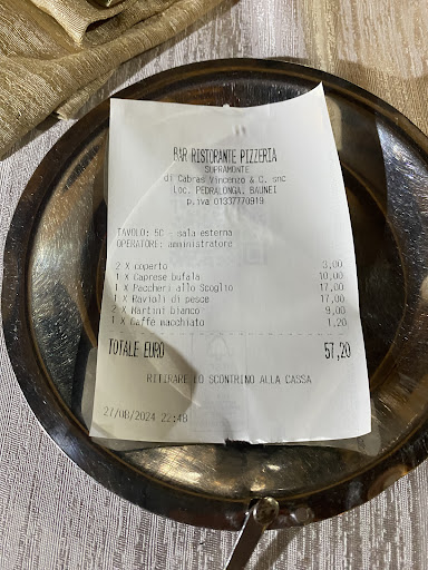 Read moreLocation ⭐️⭐️⭐️⭐️ La trattoria Pedra Longa si trova presso un roccione calcareo a picco sul mare chiamato appunto “Pedra Longa” (“pietra lunga” tradotto dal sardo), da cui si ha il nome della trattoria. Il luogo è incantevole e la trattoria ha una terrazza con una vista mozzafiato sul mare sottostante, regalando una incredibile esperienza durante la cena al tramonto. Mangiare in terrazza non è semplice: bisogna prenotare in anticipo un posto per usufruire dei tavoli con la vista migliore e bisogna pagare una aggiunta del 10% sul servizio.