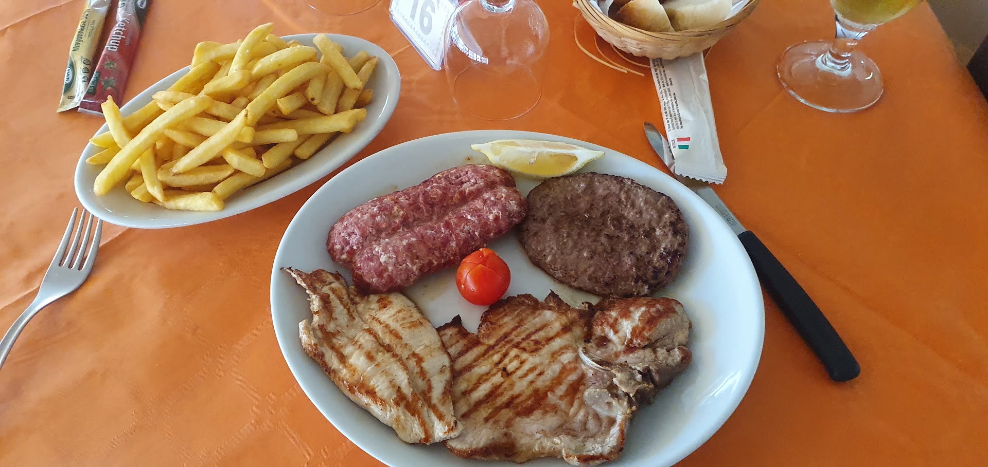 Read moreFür die Pizzen und Pasta kann ich nicht schreiben, da ich einen gemischten Grillteller hatte. Das war das schlechteste Essen was ich je hatte. Spektakulär hahaha ich lach mich kaputt. Leider kann ich kein italienisch, in Deutschland hätte ich den Teller zurückgehen lassen. Ein Fertigburgerpattie (Tk Ware), ein Stück Schweinekotlett ein wenig Hähnchenfleisch und irgendwas. Keine Gewürze, weder Knoblauch oder sonstwas. Die Anrichtung von meinem Gericht spricht für sich. Bei der Pasta meiner Frau war der Geschmack wohl okay, aber leider die Scampi auch aus dem Froster, keine frischen. Der Grillteller 15,-€ eine Frechheit. Die Pasta 11,-€ grenzwertig. Also lieber 5,-€ mehr bezahlen und unten an der Promenade essen als am Kreisverkehr den Autos zusehen. Die Pizzen sahen aber muss ich zugeben sehr lecker aus und waren auch groß. Hätte vielleicht lieber Pizza bestellen sollen. Ich würde dort kein Fleischgericht mehr bestellen. Das Personal ist aber nett und freundlich. Fazit Pizza und Pasta denke ist okay, aber der Koch sollte die Finger von Fleischgerichten lassen. Zumindest war das Fleisch nicht totgebraten. Dafür...