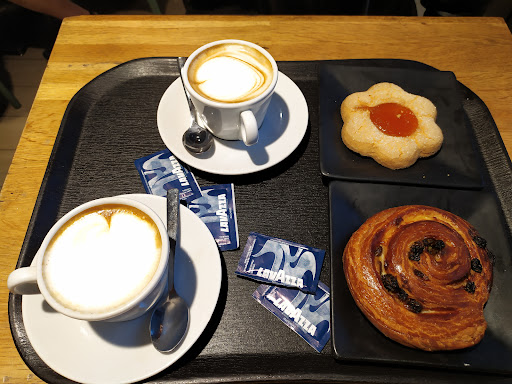 Read moreSabato scorso ho fatto colazione e comprato da mangiare per il pranzo in questa caffettiera-panetteria. Essendo arrivato poco prima dell'apertura alle 8 del mattino il locale era deserto e quindi il servizio è stato rapido. La location interna richiama un po' l'architettura industriale e, considerata la zona industriale-commerciale d'ubicazione, devo dire che ci sta. Colazione a base di cappuccino, muffin ai frutti di bosco e succo d'arancia molto buona, così come il trancio di pizza ai formaggi preso per il pranzo; l'unica stonatura è il succo d'arancia disponibile solo in bottiglietta e non sotto forma di spremuta fresca, ma forse in un locale che è sia caffetteria che panetteria la mia era una pretesa eccessiva. Comunque se si è di passaggio questo locale una sosta la merita, per colazione, pranzo e aperitivi. Parcheggio ampio e per chi si muove coi mezzi fermata dei bus GTT 43 e 48 di fronte al locale e a pochi passi fermata del bus 5 e delle linee extraurbane 1510 e 1511. Prima o dopo la consumazione fate un salto all'adiacente Banco Fresco, dove potete acquistare vari prodotti di genere alimentare, alcuni dei quali non così semplici da...