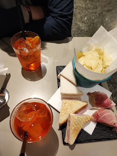 Pranzo veloce Personale cordiale e disponibile Ci siamo presentati in chiusura 12:17 di domenica e si sono resi disponibili, 3 toast 1 panino con tonno mozzarella pomodoro ed insalata, 2 Coca-Cola in bottiglia e 2 mezze gasate 28€, un piccola indicazione x evitare che il "dolce" della mozzarella e pomodoro compra il sapore delicato del tonno, si potrebbe aggiungere una spolverata di pepe nero....