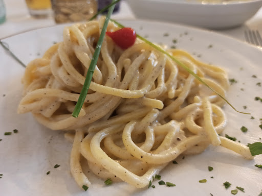 Read moreIl locale è molto accogliente. Anche il sabato a pranzo c’è possibilità di scegliere il menù a 13 euro che ci ha completamente soddisfatto anche se dando un’occhiata agli altri tavoli abbiamo visto un invitante gnocco fritto con salumi e del riso venere con gamberoni che ci hanno solleticato le papille gustative e quindi la prossima volta chiederemo sicuramente informazioni sui fuori menù. Comunque abbiamo trovato piatti ben cucinati e in porzioni abbondanti, un servizio veloce ma attento e per finire dolci fatti in casa da leccarsi i baffi. Nel dettaglio spaghetti alla pescatora eccellenti, risotto alla salsiccia perfetto, spezzatino con patate e piselli morbido e gustoso. Se proprio devo fare un appunto, ho trovato l’acqua gasata in caraffa non troppo gradevole ma è un’inezia che non cambia per nulla la mia valutazione...