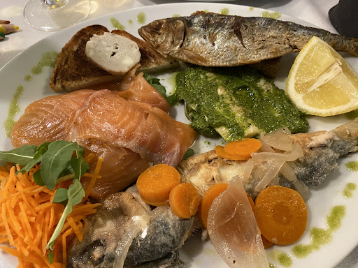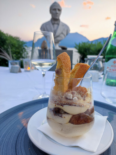 The service here is the best, the staff is so friendly and helpful, always smiling and ready to serve you the perfect dinner. The view was breathtaking, we saw the sunset with a perfect view of the lake. We were brought a basket of breadstick, bread and pastry’s. For drinks we ordered prosecco, the mojito and cherry soda, so our total for drinks was 30€. The food was so so good, the best food and the best prices, we had a lasagna, which was just perfect, the lake fish tartare, a salad, tagliatelle verdi with lake fish and grillata di pesce di lago. We had to try the famous tiramisu and it didn’t disappoint. Overall the whole atmosphere of the place was so nice, it was a perfect evening with great food. Our total for food was 130€ so 33€ per person.When they brought us the check we received some candy, i personally considered the gesture so nice😊. We all ready made a reservation for another evening.It does get busy so I advise you to make a...