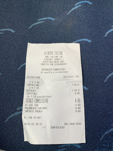 Al finire delle mie ferie agli inizi di agosto, prima di partire verso casa io e la mia famiglia siamo andate a mangiare a un ristorante ma dopo usciti e prima di salire in macchina parcheggiata vicino alla stazione ho pensato che avrei dovuto andare in bagno. Sono entrata nella stazione ma non esiste bagno lì. Dopo che sono entrata in questo bar e sicura che mi avrebbero permesso di entrare a loro bagno e magari dopo avrei consumato un caffè. Ma la risposta maleducata e seccata del proprietario mi ha congelata... il bagno solo se con scontrino, risposta secca e per niente amabile... Indignante, mi sono sentita denigrata e davanti a mia figlia adolescente . Un posto balneare che in tanto vive di turismo nei mesi di estate. E pensare che una settimana prima avevo consumato la colazione insieme ad altre 4 persone in questo bar. Cattiva pubblicità per Bellaria e cattivo esempio di buon costume, Si è verificato il 04 agosto ore 19,30 ed spero questo essere arretrato legga...
