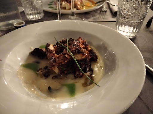 Read moreRistorante scelto per le recensioni positive sui vari social e per il menu pubblicato on line, con esito anche superiore alle aspettative. Il locale è moderno ed elegante, senza essere spocchioso o imbarazzante; il cortile esterno risulta piacevole e fresco, anche in una giornata molto assolata. Mise en place minimal, come si usa ora, con l'unico difetto evidente trovato in tutta la cena: la mancanza di un tovagliolo di stoffa. Menu ben articolato e non troppo esteso, con una serie di fuori lista attraenti che si staccano dalla tradizione della cucina locale. Anche i piatti più tradizionali sono serviti in maniera moderna e sono adeguatamente porzionati. Abbiamo assaggiato un polpo croccante dal sapore deciso ma armonioso, una tartare di tonno di ottima esecuzione e presentazione e una sontuosa pentolaccia di molluschi e crostacei appagante per la vista e il gusto. Servizio preciso, puntuale e sorridente come da diktat romagnoli e conto allineato alla qualità dei cibi. Bonus per la presenza in carta dei vini di una bollicina locale a base albana perfetta per una cena di pesce ad un prezzo allettante. Giudizio finale quindi di massima soddisfazione anche per le tempistiche del pasto e per l'atmosfera silenziosa e rilassata di cui abbiamo goduto per l'intera serata nonostante il ristorante fosse...