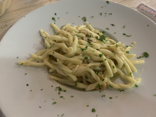 Il servizio non è dei migliori...forse ci sarà capitato il cameriere sbagliato ma partendo dal presupposto che nemmeno ci siamo seduti al tavolo per chiederci da bere, senza consegnarci una carta dei vini; ordiniamo antipasto una degustazione di freddo/caldo, considerando che siamo in due, ci arriva un piatto piccolino, al che chiediamo se fosse per due e ci viene risposto che normalmente è per una persona ma "potete condividerlo"...scusa tanto io faccio un ordine considerando di mangiare in due e non mi specifichi per quante persone è? ...poi arrivano gli altri piatti : catalana di gamberoni, buoni, ma gamberoni non erano, inondati di pomodori e un po' di cipolla; normalmente i crostacei nalla catala vanno serviti sgusciati, e comunque il piatto sapeva solo di pomodori. Primo piatto di tagliolino fresco con vongole.......sapeva solo di vino, orribile; comunque ci è stato cambiato, probabilmente non lo hanno sfumato più nel vino, e non era comunque la spaghettata di vongole che si dovrebbe mangiare in località di mare. Il locale mi è piaciuto, caratteristico e intimo, però in un periodo così caldo dovreste dare l'opportunità di mangiare con l'aria...