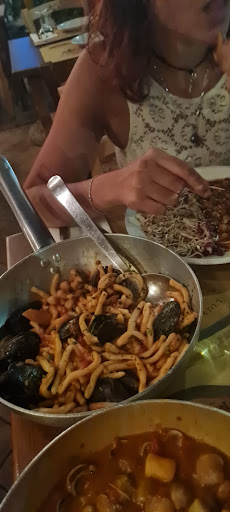 Read moreSpinta dalle foto e recensioni ci siamo recate per una cena con la voglia di mangiare il tagliolino allo scoglio (min. x2.. 34 €) è sabato.. Molto affollato.. Entriamo all'interno (SUPER AFFOLLATO E DECISAMENTE TROPPO Caldo.. Anche se i ventilatori erano accesi) per chiedere un tavolo per 2, ma nessuno sapeva... Dopo tre camerieri finalmente la 4 ci fa accomodare all esterno.. per fortuna.. Intanto ci portano da bere (acqua e bibita decisamente calde, abbiamo chiesto il giaccio ma il vasetto che conteneva il ghiaccio era sporco.. Non abbiamo capito di cosa.. Tipo sale o residui di sapone) .. Leggiamo il menù sulla lavagna all' ingresso... Ci sono i tagliolini allo scoglio, ottimo era quello che cercavamo, ma ahimè arriva la cameriera e ci annuncia che quei piatti non li fanno di sabato e domenica, grande delusione!! ma siamo rimaste.. si ordina un piatto di Cozze, decisamente molto piccanti, Strozzapreti al pesce, perché la cameriera me l ha venduto come un ottima variante al tagliolino.. Ma a parte le 3 cozze sulla pasta il resto sembrava un sugo pronto, per finire mentre si aspettava una frittura di gamberi, calamari e verdure.... Davanti ci è passata una mega padella di tagliolini allo scoglio per un altro tavolo ovviamente... Una cosa poco carina... E il malumore è aumentato.. 3 stelle le metto solo per la frittura abbondante e molto buona.. Serata sfortunata?.. Può essere.. Ma non ha soddisfatto le aspettative. Ah dimenticavo.. Mentre pagavo la signorina è rimasta male che le ho detto che la mia cena non era soddisfacente.. Quindi è andata via... Ho preso scontrino dal pos da sola e siamo andati via senza neanche che ci salutassero. Sinceramente ripensando a questo posto non avrò un...