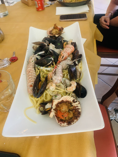 Read moreVeranda ampia e chiusa da pannellature in PVC. Purtroppo è concesso fumare ed essendo praticamente un ambiente chiuso, devi sopportare in silenzio anche se hai un bimbo piccolo con te. Ho dovuto cenare con il sapore di fumo in bocca... È vero. La legge lo consente. Ma un ristoratore può vietarlo... Ma veniamo al cibo... Ho consumato, insieme ai miei parenti, la famosa "paella" del venerdì... Sono stato invogliato a recarmi a questo ristorante proprio per gustare questo piatto da più di una persona del luogo... Non posso parlarne male, ma sinceramente nulla a che vedere con quelle che ho trovato a Valencia, Barcellona ed altre località spagnole. Più che una paella mi è sembrato un buon risotto (troppo poco il riso che nella ricetta originale deve rimanere la componente principale) con abbondanti frutti di mare (moltissime cozze, vongole, gamberoni e, addirittura, capesante...). Tutto buono, ingredienti freschi... ma "slegati"... La paella è un altra cosa...paradossalmente è un piatto più povero nel quale, originariamente, abbondano anche verdure ed aromi speziati. Nel menù (25€) era compreso il vino, il tiramisù (i miei ospiti non lo hanno gradito), ed il caffè. Un prezzo decisamente buono secondo me e che rende il locale degno di una visita... In fin dei conti vi aspettereste di trovare una perfetta piadina romagnola che ne so, a...