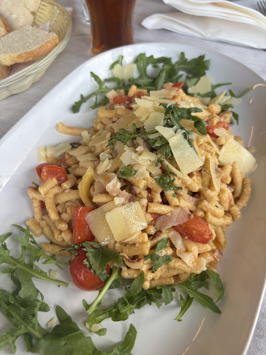 Abbiamo cenato ieri sera, un gruppo di 10 persone. Abbiamo preso due tagliolini Pic Nic che erano praticamente un cumulo di pasta in bianco con sopra del pesce buttato su a qualche maniera! Senza mantecatura né sapore! Senza pomodorini né un pizzico di prezzemolo! Pazzesco! Non sapeva di niente! Mio cognato dopo due forchettate ha trovato un bel gomitolo di capelli! Che schifo! Non un capello ma un bel ciuffo di capelli, giuro che mi è venuto il voltastomaco ed ho mollato tutto lì, avrei voluto vomitare i tagliolini mangiati🤮 . I bicchieri quasi tutti sporchi, posate macchiate e via dicendo… mia cognata ha ordinato un fritto misto ed è arrivato un piatto chiaramente con prodotti decongelati con maggioranza di bastoncini di verdure. Chiediamo 3 calici x vino ed il cameriere ci porta 3 bicchieri x acqua (non sapeva neppure la differenza!). La cameriera aveva una mano fasciata con una benda nera, sinceramente non pulita ed in più mentre serviva continuava a grattarsi la testa! Ad un certo punto mentre si è fermata a scambiare due parole con uno di noi, si è sciolta la coda e se l’è risistemata proprio vicino al tavolo dove stavamo mangiando. Al posto del pane ci portano 3 cestini di piadine che ci vengono poi addebitate ad euro 4,50 oltre al coperto di euro 2 ciascuno. Scusate ma il coperto non dovrebbe comprendere anche il pane/piadine? Insomma tutto storto! Anche sto posto da cancellare proprio! La padrona veramente scortese anche se alla fine ci ha scontato i...