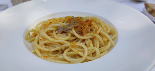 Read morePurtroppo l'esperienza nel complesso non è stata particolarmente soddisfacente come ci si aspetterebbe da un ristorante con un listino prezzi medio-alto. Personalmente ho provato il bucatino con vongole e bottarga, la pasta era decisamente poco cotta, molto, troppo al dente. Il sughetto era anche buono, ma in un piatto di 15 euro bisogna azzeccare la cottura della pasta come minimo. Lo spaghetto aglio e olio per un bambino al tavolo aveva aglio crudo all'interno ma tutto sommato era buono, purtroppo non ho le foto degli altri piatti, ma sono stati prese linguine allo scoglio, anche queste discrete, il pesce fresco e buono ma il sugo mediocre. (Penso sia colpa del pomodoro usato). E il fritto, l'unico motivo per la quale non so meno di tre stelle, il fritto era veramente buono, come sapore e come porzione. I camerieri e il servizio di poca esperienza ma comunque hanno fatto il loro lavoro egregiamente, il conto un po' alto vista la qualità dei piatti, ma penso e mi auguro sia solo un episodio isolato, a tutti può capitare di sbagliare la cottura di...