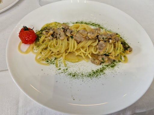 Qualche giorno fa, per conoscere sempre più ristoranti per la mia rubrica Instagram #LEMANGIATEDIGAETANODONATI , sono stato al Ristorante ArteGusto, ed appena entrato mi ha subito colpito l’arredamento molto moderno, in particolare la cucina, con una vetrata dove c’erano le goccioline d’acqua che si muovevano. Veramente molto ma molto bello. Ma ora andiamo sul “piatto” forte, le pietanze ordinate. Nell’attesa (per modo di dire, dato che sono stati davvero velocissimi nel portare le pietanze) ci hanno portato la frittatina di pasta, molto buona. Come Antipasto, ho scelto un misto che comprendeva: Come prima portata: Maionese di Ostriche con Puntarelle e Caviale; Come seconda portata: Catalana di Astice con Sfoglietta Croccante di Semola; Come terza portata: un frollìno al Parmigiano su Mancato di Ricotta di Bufala e Salmone; Come quarta portata: Parmigiana di Zucchine con Gambero Rosa e Datterino Giallo; Ed infine, come quinta portata del Filetto di Spigola in Tempura su Crema@si Scarola e fonduta di Provola. Tutto davvero molto buono. Come primo invece, di solito prendo sempre la classica spaghetti e Vongole che amo tantissimo, ma mi attirava tanto Lo spaghettone con vongole Veraci, Pesto e Tarallo Napoletano Sbriciolato. Ragazzi che dire, era spettacolare, sono stato contentissimo che per la prima volta, ho abbandonato la classica pasta e vongole e scelto questa. Infine, dato che con tutti questi antipasti è il bel primo Abbondante, ho deciso di andare direttamente al dolce, ed ho scelto un semifreddo al Torroncino molto buono. Ve lo consiglio...