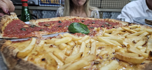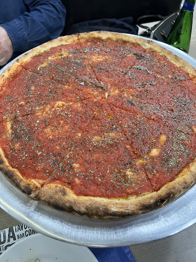 Read moreSicuramente il migliore per mangiare la famosa pizza americana (pizza gigante servita su un ruoto). Si possono scegliere 2 gusti per ruoto. Prezzi nella norma. Oltre ciò non c'è altro motivo di particolare lode.... Il locale è molto frequentato e non raffrescato a dovere. La pizza non è da intendersi come pizza. È più una pinsa perché non ha spessore neanche nel cornicione (però è morbida). Il menù non prevede dolci ed è ampio nella scelta delle pizze, sufficiente nella scelta dei fritti (un pó costosi per la quantità minima che danno) e scarno nella scelta della birra (2 tipi). Buona la 4 formaggi, particolare e molto buona la Nero14. Il personale è stato attento nonostante la ressa del sabato sera... Tempi di ingresso variabili perché è veramente frequentatissimo... tempi del servizio buoni (un 20 minuti...) considerando che c'era il mondo lì dentro e in attesa fuori... Consiglio come esperienza di "pizza" americana ma non consiglio se si ama una pizza classica con cornicione alto e soffice perché non è una...
