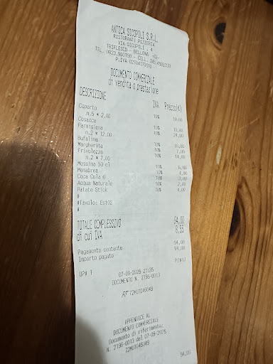Esperienza terribile: arrivati intorno alle 21:30, ci accomodiamo in sette, e dopo una rapida occhiata al menù decidiamo di ordinare. L’unica cameriera che prende le ordinazioni si avvicina, anche con un po’ di affanno, circa mezz’ora dopo. Ad ordine fatto ci servono gli antipasti intorno le 23:00. Inutile precisare che i fritti erano tutti senza sale, e le bruschette senza condimento. Attendiamo ancora, intorno mezzanotte chiediamo per le pizze, e i camerieri, molto gentilmente, ci dicono che bisogna aspettare ancora un po’, almeno un quarto d’ora. Indecisi se andar via come quasi tutto il resto della sala, decisamente a digiuno, aspettiamo ancora un po’. Ed ecco arrivare le “pizze”. Peccato che erano praticamente senza sugo, e soprattutto su sette pizze ne arrivano sei. Decidiamo così di mangiare in fretta, era ormai quasi mezzanotte e trenta, e ci dirigiamo alla cassa, dove il proprietario, in evidente imbarazzo, non ci sa dare nessuna spiegazione in merito alla lentezza del servizio, e per di più ci fa pagare il conto senza nemmeno scusarsi o applicare un minimo di sconto. Quest’ultimo sicuramente non dovuto, ma sarebbe stato molto apprezzato dopo 3 ore di attesa e di cibo scarso, magari avremmo forse preso in considerazione di tornare. Inutile precisare che i prezzi erano anche fin troppo alti per la qualità del cibo e del servizio. Unica nota positiva, il cameriere, che in imbarazzo non sapeva come comportarsi con la clientela e il fuggi fuggi generale, ma almeno...