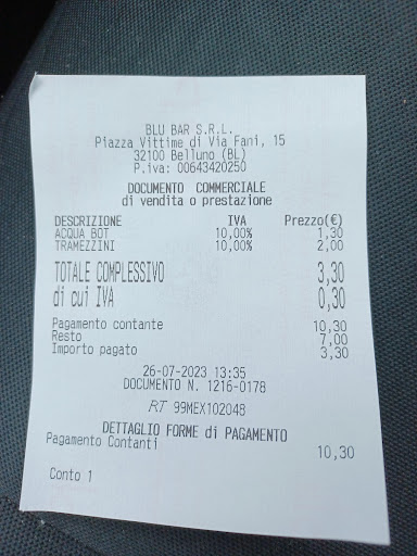 Read moreIl locale in sé è anche carino ma i prezzi per le bottigliette di acqua sono esorbitanti. Una bottiglietta di acqua frizzante da 0,25 ml ( la metà di mezzo litro) viene a costare la bellezza di €1,30. Se ne avessi prese 4, (1 litro in totale) avrei speso € 5,20. Inoltre ho comprato un tramezzino al prezzo di € 2,00, che era senza la maionese. Il consiglio che posso dare a chi legge tale recensione è di stare alla larga da tale locale. SONO...
