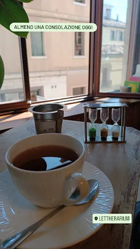 Read moreAnche se il primo impatto è che sia accogliente e confortevole lo era molto di più Un po' di tempo fa e forse un po' di aggiornamento nell'arredamento Sempre in stile gioverebbe all'atmosfera generale. Resta comunque un posto molto piacevole con un sacco di buone tisane cioccolate e caffè interessanti variati e stuzzicanti. Ci sono anche Tanti dolcetti biscotti e anche articoli simpatici da comprare. Il punto di forza resta comunque lo spirito del locale che sembra fatto apposta per leggere studiare fermarsi a chiacchierare e socializzare. Sempre bella la grande presenza di libri che pur facendo parte dell'arredamento invitano davvero la lettura che sia studio...