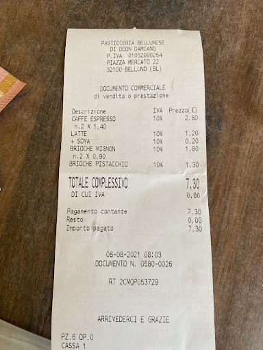 On the day of the birthday I picked the cake at Pasticceria Bellunese Caffetteria.