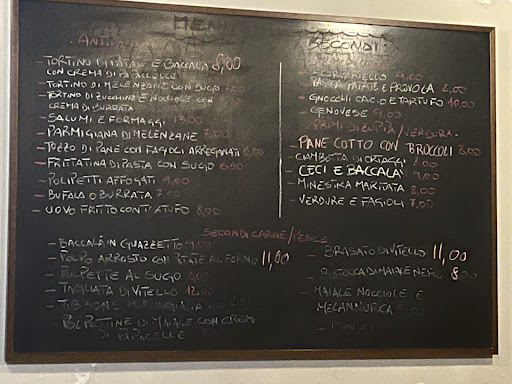 I piatti erano nel complesso buoni, con ingredienti che richiamano la cucina casalinga e genuina. Tuttavia, un paio di portate non hanno convinto del tutto: in particolare, il tortino di baccalà, che si presentava asciutto e con un sapore non ben definito, un po’ troppo distante dall’equilibrio che ci si aspetterebbe da un piatto del genere.