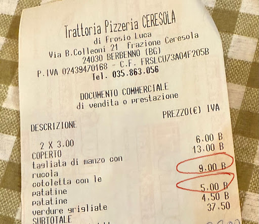 (the menu clearly states the dish: «Cutlet with fries = 8€» On the receipt they charged us a cutlet for 9€ and separately potatoes for 5€. Where do these prices come from if one...