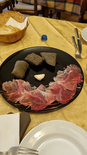 Food is tasty though a little on the pricey side compared to comparable meals we’ve had during our trip. The steak was very good quality, and cooked to a perfect medium rare, served with kosher salt and a sprig of rosemary (break up the rosemary into your steak, it’s delicious). We had a nice appetizer of thick mushroom sauce on toast. You must try the “Risotto di Perfumi dell’Orto” - risotto with garden scents. It comes scattered with a selection of homemade spice mixes from local ingredients. Every bite is different and it’s one of the loveliest risotto dishes we’ve enjoyed. We also had a really nice cake for dessert with balanced sweetness and pleasant texture.
