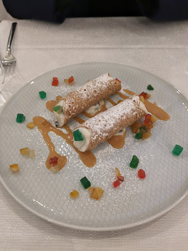 Read moreSono stata a cena in questo ristorante con la mia famiglia e il nostro cane. Abbiamo prenotato tramite TheFork. La richiesta è stata subito accolta e le domande speciali lasciate sulla piattaforma sono state ascoltate e rispettate. Sin da subito veniamo accolti da un personale di sala molto sorridente e disponibile che ci prende le giacche e ci fa accomodare. La cena comincia con un amuse-bouche con crema di ceci al limone e gamberi davvero gradevole. Continuiamo con i seguenti piatti: vellutata di zucca, amaretti e stracciatella (consistenze perfette) polpo con crema di patate e olive taggiasche (cottura del polpo e presentazione del piatto davvero ottimi) risotto scampi e agrumi (cottura del riso perfetta e gusti molto bilanciati) tagliatelle ai funghi (tagliatella spessa, gradevolissima al palato e alla masticazione) cannoli siciliani tris di sorbetti (è sembrato di mangiare la frutta in più consistenze e la presentazione era davvero meravigliosa) crostatina con crema pasticcera e frutti di bosco (crostata leggermente spessa ma friabile, molto gradevole, e frutta freschissima).