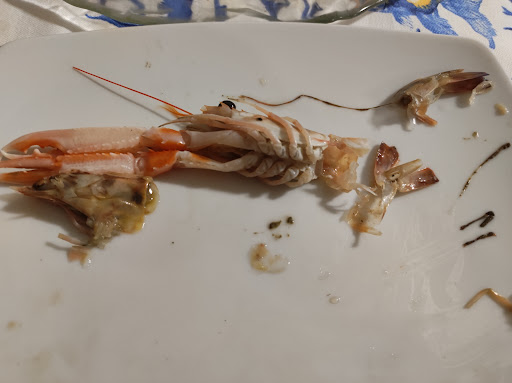 Menú: Mai mangiato così male in un ristorante che dice di essere "Di Pesce" Antipasto di crudi con fette di salmone CONGELATO attaccate, scampi e gamberi lasciati con intestini attaccati (FOTO), che su espressa domanda alla cameriera viene risposto che "allo Chef piacciono così" Risotto Scomposto servito con cozze FREDDE e sfilacci attaccati, gamberi sempre NON PULITI e riso quasi crudo "Zuppa di Pesce" consistente in brodaglia allungata al pomodoro, con pesci messi all'interno senza rispettare le cotture, anche questi non puliti, risultato una brodaglia piena di lische, spine, teste e pezzettini di pesce stracotti tutto ammassato assieme, immangiabile.