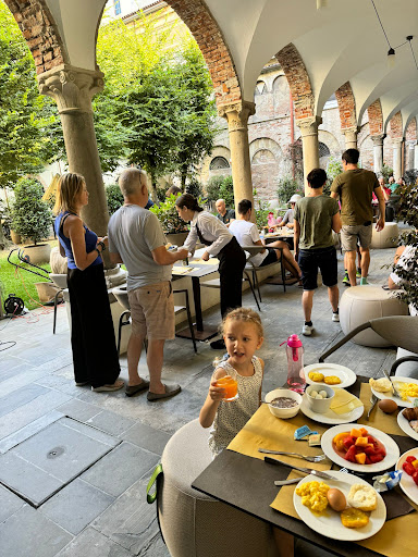 Read moreWe logeerden in hotel Palazzo Santo spirito, ik vermoed van dezelfde eigenaars. Het hotel op zich was zeker oké, maar het restaurant absoluut geen aanrader!!! Prijs/kwaliteit ver te zoeken! En vriendelijkheid staat duidelijk niet in hun woordenboek! Het eten op zich was wel oké, maar niet de kwaliteit noch de hoeveelheid die we toch wel verwacht hadden. Het brood dat bij ons eten geserveerd werd leek een overblijfsel van het ontbijt, compleet uitgedroogd. Maar de service was beneden alle peil! We bestelden na ons eten een americano (espresso met heet water). De koffie kwam, maar het water bleef weg. We hebben hier drie keer naar moeten vragen. Blijkbaar was hier een probleem mee want de serveerster vroeg dit aan een collega en dat maakte hem zo boos dat hij met een dienblad smeet. Het gevraagde water kwam nog niet, onze koffies waren al koud geworden. Uiteindelijk werd het ons toch gebracht, en werd het ons bijna op tafel gesmeten. De serveerster smakte het gewoon op tafel en liep weg. We begrepen er echt niets van, zelf hebben we ons op geen enkel moment boos gemaakt en zijn we heel beleefd gebleven. Uiteraard hebben we hier ons beklag over gemaakt en de serveerster is zich komen excuseren, maar op zo’n manier dat duidelijk was dat ze er niks van meende. We hadden gewoon gevraagd wat we besteld hadden en echt niks onmogelijks verwacht. De koffies zijn ons niet aangerekend maar we zijn er toch met een heel verveeld gevoel vertrokken. Er zijn in de buurt een pak veel betere restaurants waar je als klant heel wat beter...