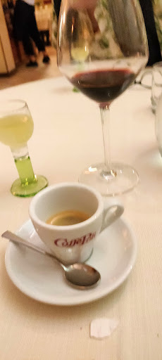 Our desserts of Panna cotta and cheesecake were great. But sorry no photos of the food-- just my empty wine glass, coffee and the free light limoncello. And very...