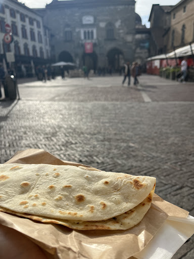 Each piadina was generously filled, beautifully balanced, and served warm—ideal for a picnic-style bite in the sunshine. Sitting near the historic Lavatoio, surrounded by local architecture and the quiet hum of life in the piazza, I felt like I’d stepped into a Bergamasco daydream.