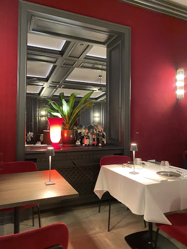 I grigi antracite delle boiserie, le preti in velluto rosso Cina, i dettagli di luce fanno si che L atmosfera spt della prima sala rendano il tutto molto ovattato ed elegante. ( consiglio la sala del camino, che permette anche la possibilità di vedere le creazioni dei dolci e della piccola pasticceria ) Sconsiglierei la sala più grande, più caotica e meno intima. ( per qualcosa di più intimo interessante anche la sala entrando a sinistra )