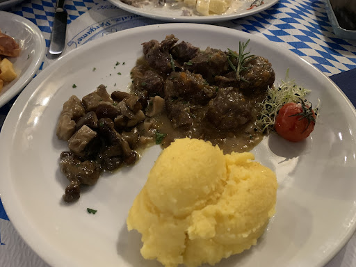 This was one of the few places opened till 3pm and since I was having a late lunch with my girlfriend, we tried this place. I had the deer with polenta while my girlfriend had the cream pasta. Additionally, we ordered some sausages with fries and sauerkraut (which isn’t photographed). Polenta here is really good! Very fast with the sauce and the deer meat was fabulously cooked. The cream pasta was also delicious and creamy. Although the sausage was a little underwhelming, it was still ok. I was expecting a different kind of sausage but it wasn’t bad. The service staff were very friendly and helpful, always smiling and food was served quickly. The menu was also available in English so it was very welcoming and helpful. Definitely have a go at...
