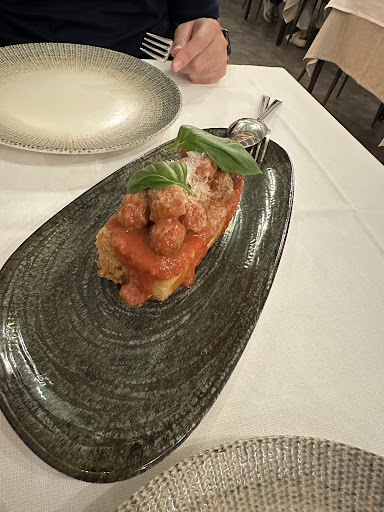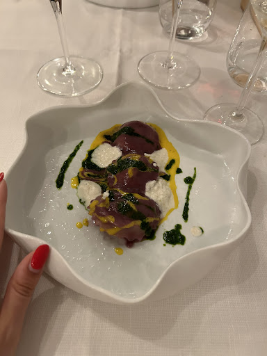 Abbiamo scelto il menu a base di carne, e ogni piatto è stato una scoperta di sapori e qualità. In particolare, la Sandalia ci ha lasciati senza parole: una battuta al coltello di Black Angus, arricchita da polveri mediterranee, gel di Rum, pane alle erbe e latticello fresco. Un equilibrio perfetto tra creatività e gusto (allego foto).