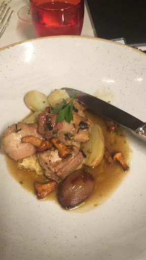 I had the boneless rabbit with fungi and potatoes. Some of the complementary samples like mushroom soup and spinach ravioli were outstanding.