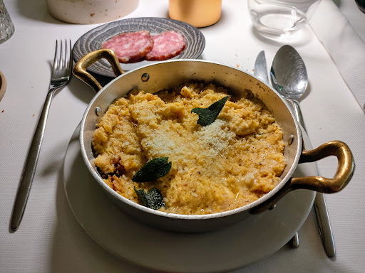 Read morePrepare to get a little something for free, pretty unconventional things. We expected the portions to be small but they surprised us. We only had one first course that we split (two people) and second courses for each of us. We were leaving full and satisfied. Got dessert on the house also. It is a pricey place but we enjoyed it. I put only 4 stars for atmosphere because the people surrounding the restaurant were shouting and there was a man from the street selling roses for a bit which was disruptive. The restaurant itself is a great place with professional staff that help you with everything and take great care of you. Highly...