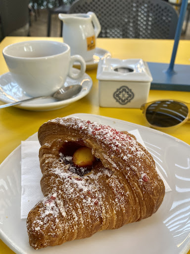 Read more4.50 un espresso con quattro (contati!) pezzi di granella di pistacchio e un cucchiaino di crema al pistacchio sul fondo. Va bene essere rinomati, ma questo per me è esagerare. Un euro di maggiorazione sarebbe stato più che sufficiente. Inoltre facendo finta di niente ti obbligano a registrarti solo per leggere il menu (chiedete pure il cartaceo perché anche se non ve lo portano o propongono ce l’hanno). Sabato pomeriggio troppo caos, sia alla cassa che nel dehor. Andata per pigrizia, proporrò di non tornare.
