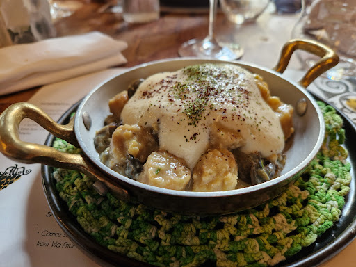 I went on recommendation of my airbnb host, couldn't get in the first night (went to excellent Dispensario in the bell Tower square instead) so I booked the following night. I was so looking forward to it, based on all the reviews, but I was very disappointed. Service bland, ranging from cold to non-existent. The waitress had no idea what's in the dishes. The starter of Sicilian prawn "salad" was weirdly presented, with soggy zuccini flower and school canteen piece of pepper w melted cheese on it (?!). 3 little tapas dishes with nothing in common, and impossible to eat easily, not to mention bland. The beef cheek in red wine, rich, thick, as it should be, but overspiced with cinnamon and cardamom or cloves or all of the above, it was so so bitter, absolutely overpowering the fabulous meat cut and killing any of its delicate flavour. My mouth was burning from the spice bitterness for an hour after, and I love spices especially Middle East and North Africa, but this was something else! It was completely uninspiringly served with totally unseasoned, bland squashed polenta, nothing else. Definitely won't be back, considering so many good options in Bergamo, including in spectacular piazza Vecchia. This is expensive, and has neither the view of L'Alimentari nor the food of Dispensario to...