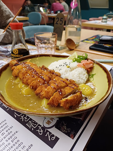 Read moreAbbiamo prenotato in questo locale principalmente per provare il ramen e siamo rimasti molto soddisfatti. La location disposta su due piani è stupenda, come molti altri posti di questa tipologia ha infatti le pareti decorate con motivi che ricordano l'arte giapponese e i personaggi dei principali manga, con tanto di action figure e poster sparsi per tutto il locale. Abbiamo ordinato come antipasto una porzione di takoyaki, tradizionali polpette di polpo, due ramen e un dorayaki alla fine. Era la prima volta che provavo i takoyaki quindi non so dare un giudizio in termini di autenticità del prodotto, ma a noi sono piaciuti molto. Veramente buoni invece i due ramen, in modo particolare la specialità della casa, il senoku ramen. La qualità del brodo era buona, la materia prima all'interno fresca e abbondante e con le giuste cotture. Il dorayaki ai fagioli azuki era un po' asciutto, sembrava industriale, non lo riprenderei probabilmente. Il servizio è stato molto preciso e veloce nonostante il locale fosse strapieno e il personale è stato gentilissimo e preparato. Forse da rivedere la scelta di utensili per il ramen in bambÚ che magari non possono essere messi in lavastoviglie e quindi non proprio igienici. Sicuramente originale è l'idea di allestire in un angolo una sorta di "punto cosplay": per chi volesse ci sono infatti alcuni costumi e accessori dei personaggi piÚ iconici per farsi delle foto. Presenti anche alcune proposte di bubble tea che però non amando non abbiamo preso. Ci ritorneremo sicuramente per provare altri piatti come gyoza, curry katsu o kimchi. Prezzo assolutamente conforme a quanto ricevuto....