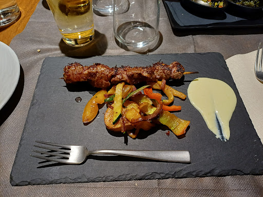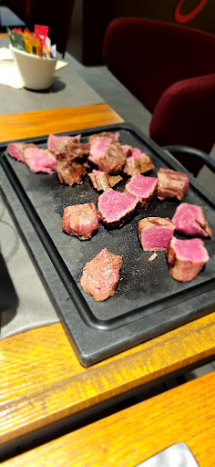 Abbiamo ordinato filetto di wagyu ed una tagliata di diaframma, contorno di patate al forno ed insalata. Wagyu spettacolare, si scioglieva in bocca, il diaframma ovviamente non era così morbido, ma comunque ottimo, leggero retrogusto di frollatura, quasi formaggio so, magari troppo intenso per alcune persone, ma ottimo. Ma la cosa che più mi ha stupito son le patate, buonissime, perché passi la carne che dipende molto dalla qualità, ma le patate me le sogno ancora. Abbiamo speso circa 100 euro in 2, ma principalmente per il costo del wagyu. Menu con allergeni, ma per sicurezza comunque chiedete al personale che vi consigliano. Unica pecca la musica un po'...
