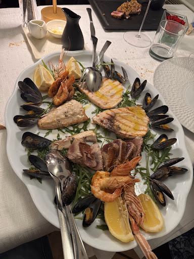 We arrived without a reservation but were promptly welcomed and brought up the stairs to the seated area. The gentleman who served us was friendly, had impeccable English and explained the dishes with enthusiasm. Our young son had the linguine with lobster while my husband and I shared a selection of shellfish. For mains, my husband chose the amberjack while I had another helping of crustaceans. Delicious. We enjoyed it with a local bottle of white wine which was priced very reasonably. We really enjoyed our food, and as a seafood lover, it has scratched an itch, until our next...