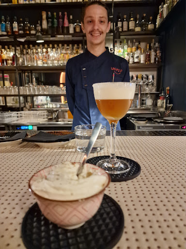 Unplug è un cocktail bar che si distingue per una proposta curata e ben strutturata, sia in termini di beverage che di servizio. La cocktail list è ampia e interessante: accanto ai grandi classici eseguiti con precisione, spiccano le creazioni originali preparate con distillati e fermentati autoprodotti, frutto di un lavoro di ricerca che valorizza tecniche moderne e ingredienti insoliti.