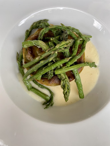We started our meal with a delicious appetiser, the asparagus tarte with pecorino cream. The dish was beautifully presented and tasted nice, with a good balance of flavours. It was the perfect start to our meal.