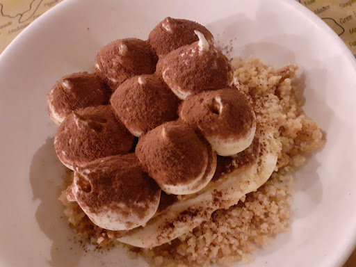 Ma la ciliegina sulla torta è stato il tiramisù. Davvero! Io sono una tradizionalista e il tiramisù lo preparo un giorno sì e uno no, come si suol dire. Un tocco di crumble salato attorno ad un tiramisù della tradizione davvero spaziale....