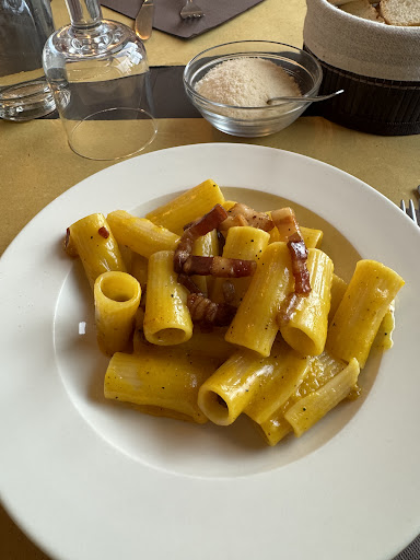 Carino e lo staff è capace e come si vuole in certi posti alla mano,poca etichetta e buoni piatti,certo io ed i miei 2 amici(italo-americani da 120kg a testa)siamo arrivati tardi è abbiamo mangiato un po' di tutto! Ho chiesto se potevano darmi oltre la lasagna che era da assaggio a me figuriamoci ai miei amici,e mi hanno fatto lasagna e pasta cacio e pepe (piatto doppio!)poi uno splendido stracotto(come lo fanno qui nella zona!) tiramisù caffè e conto,tutto buono da...