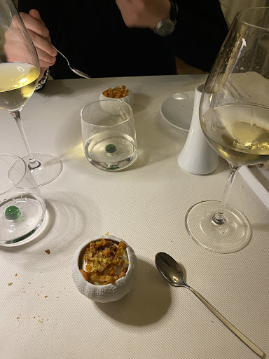 Wow! We visited the restaurant yesterday with friends. I wanted a bit of a treat and, as good fish and seafood is rare in Umbria, we decided to visit following a recommendation. We knew that it would be expensive but we were blown away by the food. The menu consists of a small number of degustation menus ranging in price from €40 to €70 a head. All guests at each table have the same menu. We chose the sea and land menu degustation and it did not disapoint. From the bite sized pre aperitivi through the 6 courses of our €65 a head menu it was a taste and texture revelation. We finished with coffee and the most delicate petit fours. Everything we ate was beautifully presented and absolutely delicious. Well worth paying the extra to experience this fabulous food. We selected a crisp unoaked chardonnay to go with the meal, which was perfect, we had 2 bottles of the wine over the course of the meal. We all went away feeling well satisfied with the whole experience which took around 3 hours but was nicely paced with excellent service from our attentive but not intrusive waitress. We will...