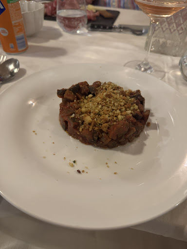 Read moreSono stato a cena con la mia famiglia in questo ristorante di cui mia sorella mi parlava da anni in quanto ci era andata diverse volte ed era rimasta sempre soddisfatta. Iniziamo la serata scoprendo che ci sono degli special del giorno extra menù: bella iniziativa, decido quindi di prenderne uno, ossia un arancino ripieno di salsiccia e tartufo su crema di pecorino. Non male l´idea di proporre un arancino in versione umbra, piatto però banale (buona la base al formaggio, ma tartufo non percepibile). Anche gli altri antipasti che abbiamo preso (prosciutto e finocchiona uno, polentina fritto l´altro) erano normali, niente di sopra le righe. Dopo gli antipasti, complice il fatto, forse, che il locale fosse pieno, aspettiamo un po´ per la portata principale, ma può capitare, nulla di grave. Avevo ordinato la terrina di maiale con cipolle caramellate e cardoncelli. Non essendo specificato nulla, mi aspettavo la terrina di carne e a parte le vedure, ma con mia sorpresa erano presenti i funghi ma non c'erano le cipolle caramellate, ne a parte, ne all´interno della carne. A domanda specifica, il cameriere ha affermato che la cipolla fosse nella terrina, ma non c'era, e in ogni caso se la verdura viene specificata deve essere una pietanza ben visibile. Ribadisco la cosa al cameriere con educazione quando viene a togliere i piatti, ma senza ottenere risposta o qualche reazione. La cosa divertente però avviene dopo: un´altra cameriera, senza guardarci in faccia, viene a portarci le carte dei dolci, e appoggia bruscamente davanti a me quelle per me e per la persona seduta vicino a me, visibilmente irritata. Scioccati dalla cosa controlliamo comunque i dolci; avremmo voluto ordinare qualcosa, ma abbiamo desistito a causa dell´attesa, a mio avviso non giustificata perchè a quel punto della cena il locale si era quasi svuotato. Andiamo a pagare (cifra normale), non ci viene chiesto nulla, e andiamo. Che dire, mi dispiace per come è andata la serata e per il trattamento ricevuto, dato che una domanda/critica fatta in modo educato non ha ricevuto risposte e ha provocato dei comportamenti poco professionali. Non mi era mai successo. Nel 2025 pensavo fosse normale ricevere una domanda da un cliente e dare una risposta, soprattutto se la cosa viene ribadita. In altri ristoranti in caso del genere si presenta il cuoco o il proprietario e viene data una spiegazione e/o proposta una soluzione, come rifare il piatto ad esempio.